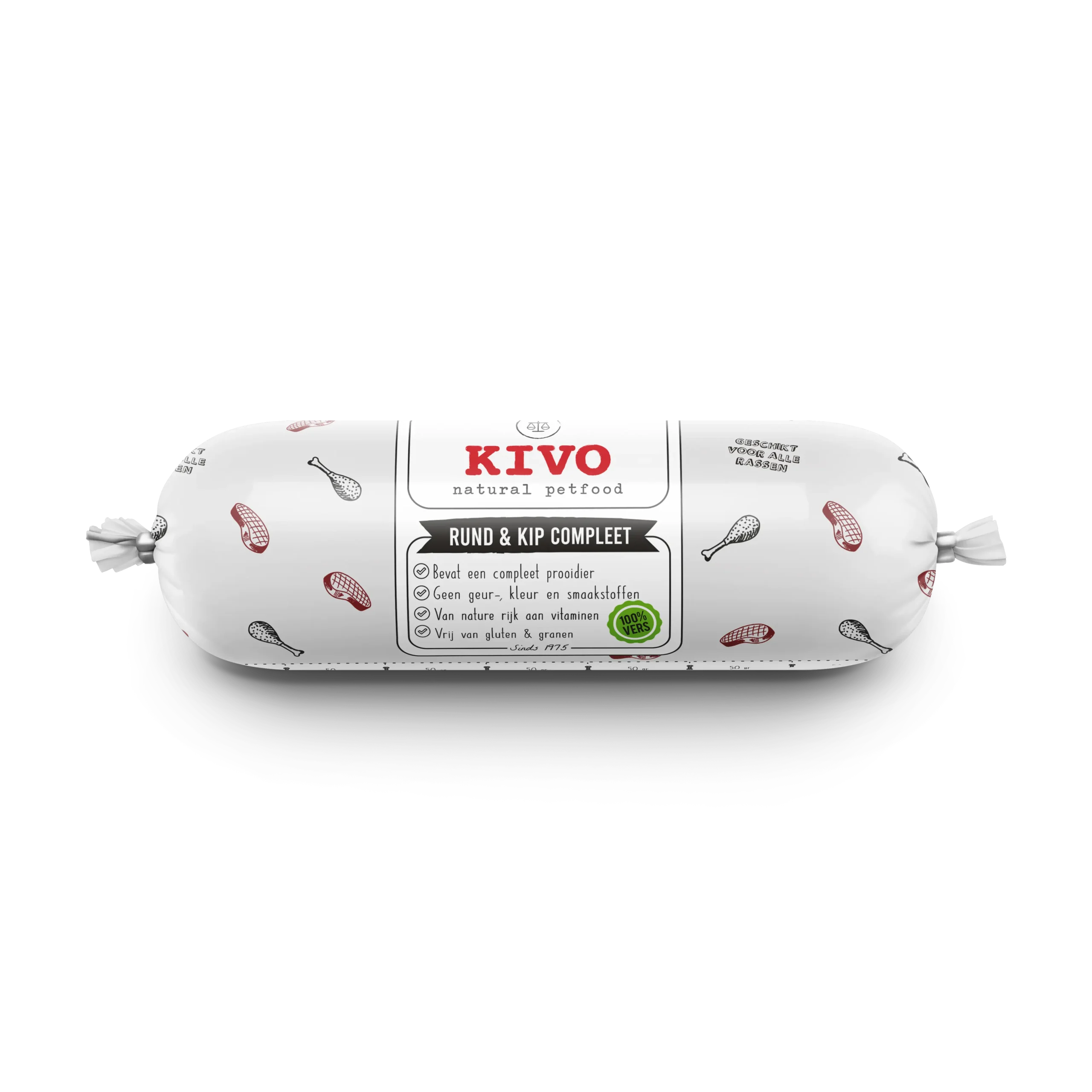 This beef & chicken complete portion packaging is suitable for four-legged friends of all ages, from puppies to seniors.